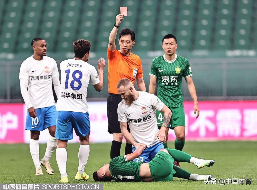 裁判對青島西海岸隊18號球員出示紅牌