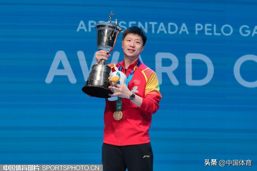 男單冠軍馬龍在頒獎儀式上