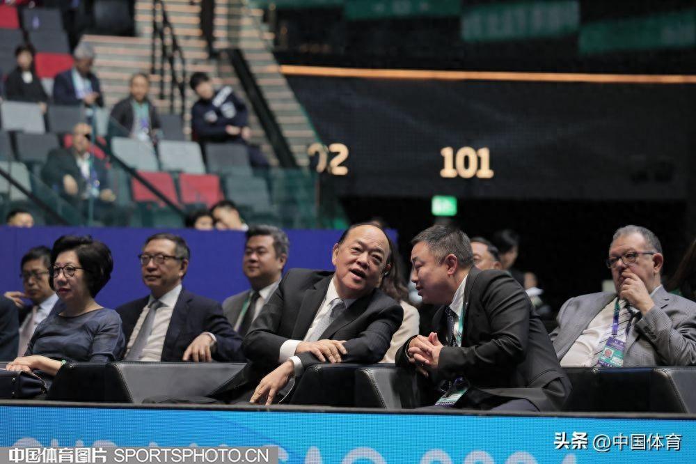 澳門特別行政區行政長官賀一誠和中國乒協主席劉國樑交談