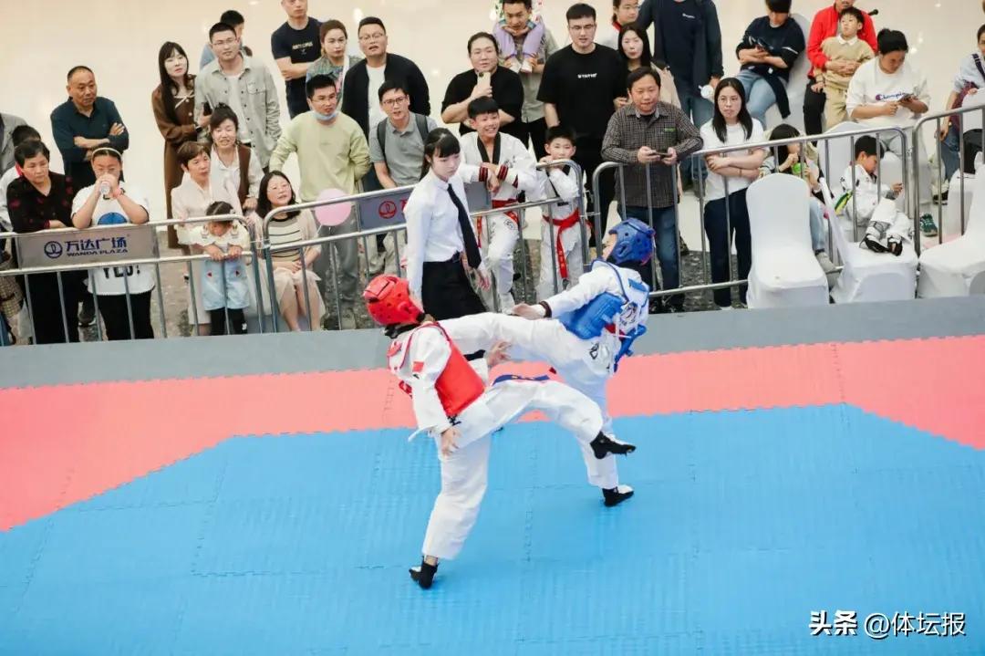 由於比賽放在商場中央,在樓上樓下立體式助威下,跆拳道小將紛紛展現出紮實的基本功和極強的競技水平。