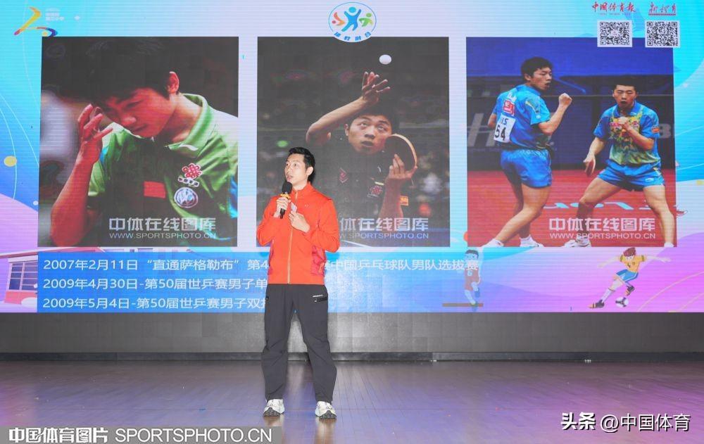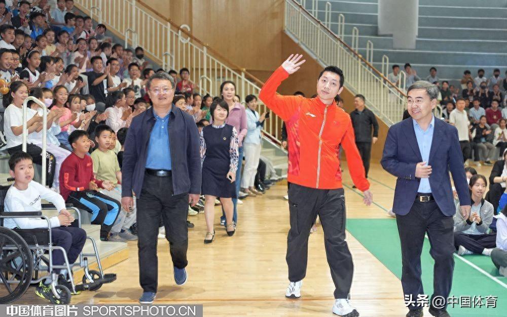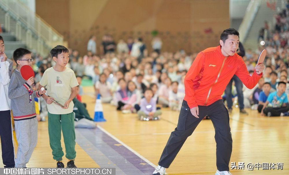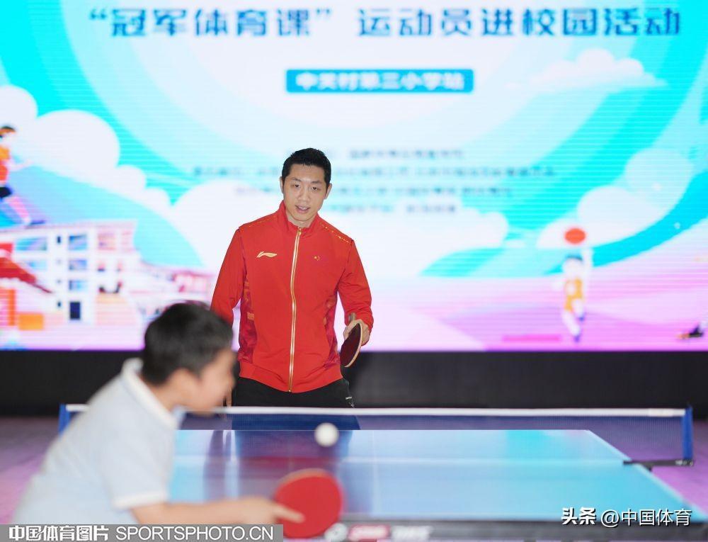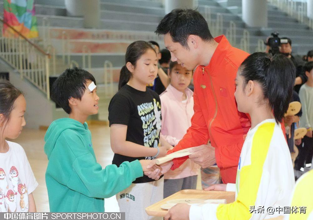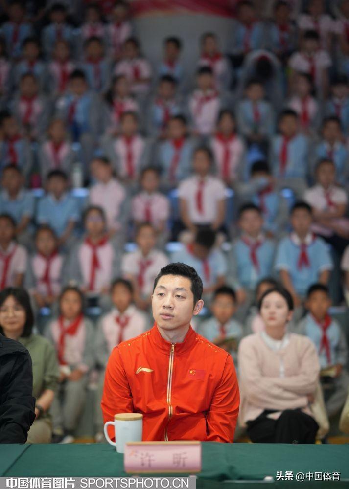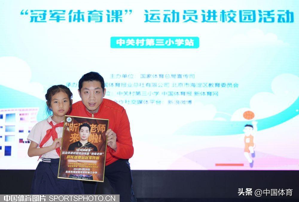 中國體育訊 4月26日,乒乓球奧運冠軍許昕來到北京市海淀區中關村第三小學,參加“中華體育精神大講堂”校園宣講及“冠軍體育課”運動員進校園活動。許昕在活動中與該校師生分享了自己的運動生涯,並和學校的乒乓球小運動員們進行了交流。圖爲活動場景。(中國體育圖片 魏徵 攝)