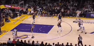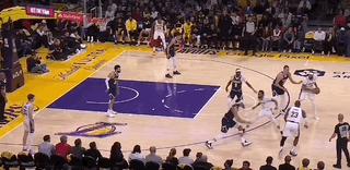 這一回合更是穆雷-約基奇-戈登連線的完美復刻。只是策動擋拆的是裏夫斯,接球順下的是濃眉,而溜底線切入喫餅的換成了詹姆斯。