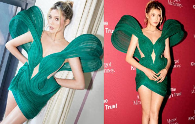 谷愛凌赴慈善晚宴,穿鏤空綠裙真美!極致大長腿,豔壓一衆超模