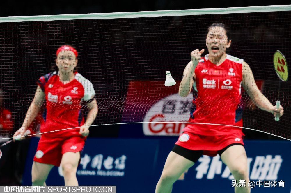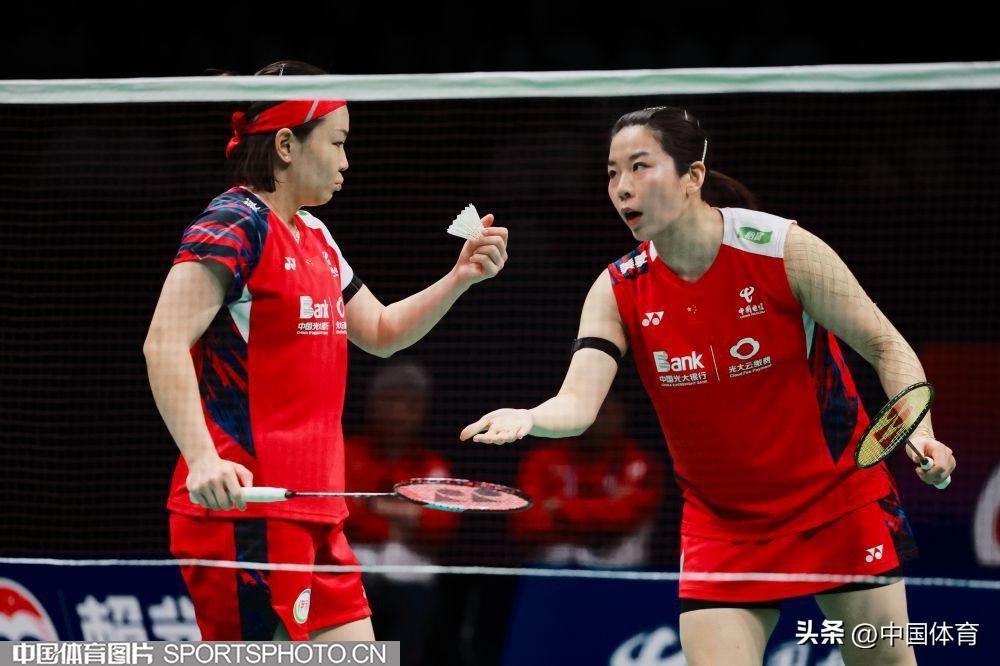結束比賽的陳雨霏(右)、賈一凡爲場上隊友加油
