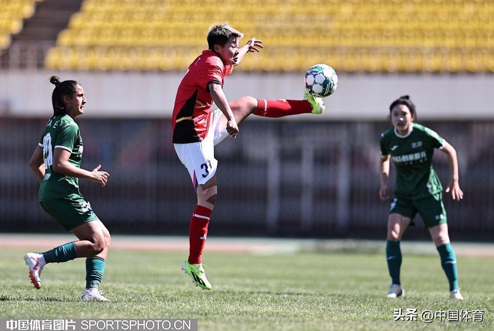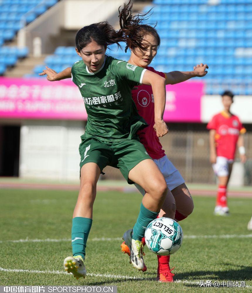 中國體育訊 5月11日,2024年中國太平中國足球協會女子超級聯賽第7輪的一場比賽在北京先農壇體育場舉行。北京雨虹修繕隊(綠衣)主場1比0擊敗永川茶山竹海橙獅隊。圖爲比賽場景。(中國體育圖片 王憲民 攝)