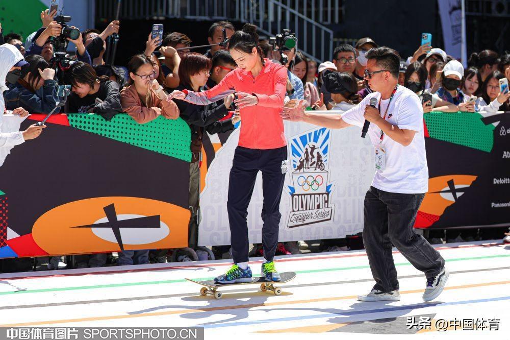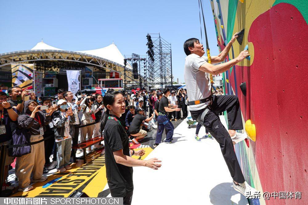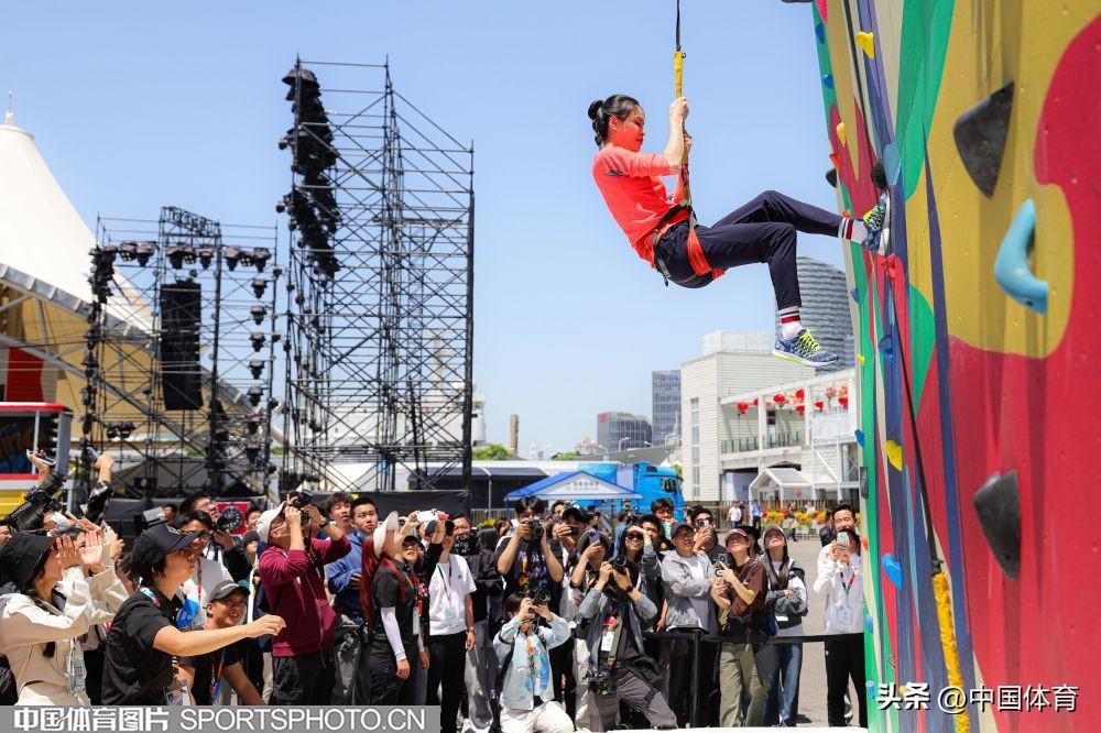 中國體育訊 5月16日,巴黎奧運會資格系列賽上海站在黃浦江畔揭幕。范志毅、吳敏霞、鍾天使、趙麗娜、黃齡等上海文體明星化身“運動體驗官”,感受滑板、攀巖等奧運項目的魅力。在這項國際奧委會全新打造的賽事中,四個奧運新興項目——滑板、攀巖、霹靂舞、自由式小輪車的464名世界頂尖選手,將爲150餘張巴黎奧運會入場券展開終極對決。(中國體育圖片 安靈均 攝)