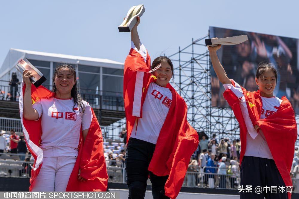 中國體育訊 5月18日,巴黎奧運會資格系列賽在上海黃浦濱江繼續進行。在女子自由式小輪車決賽中,中國選手孫思蓓、孫佳琪和鄧雅文發揮出色,包攬項目前三名。(中國體育圖片 李翔 攝)