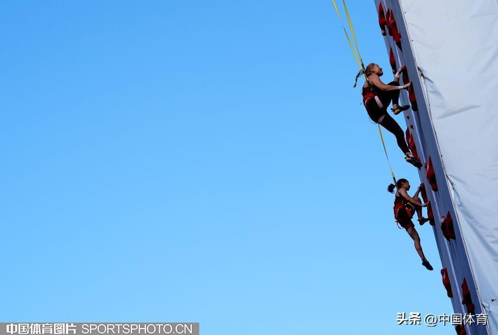中國體育訊 5月18日,巴黎奧運會資格系列賽在上海黃浦濱江繼續進行。在女子速度攀巖決賽中,中國選手周婭菲獲得冠軍,牛笛獲得第四名。(中國體育圖片 倪敏哲 攝)