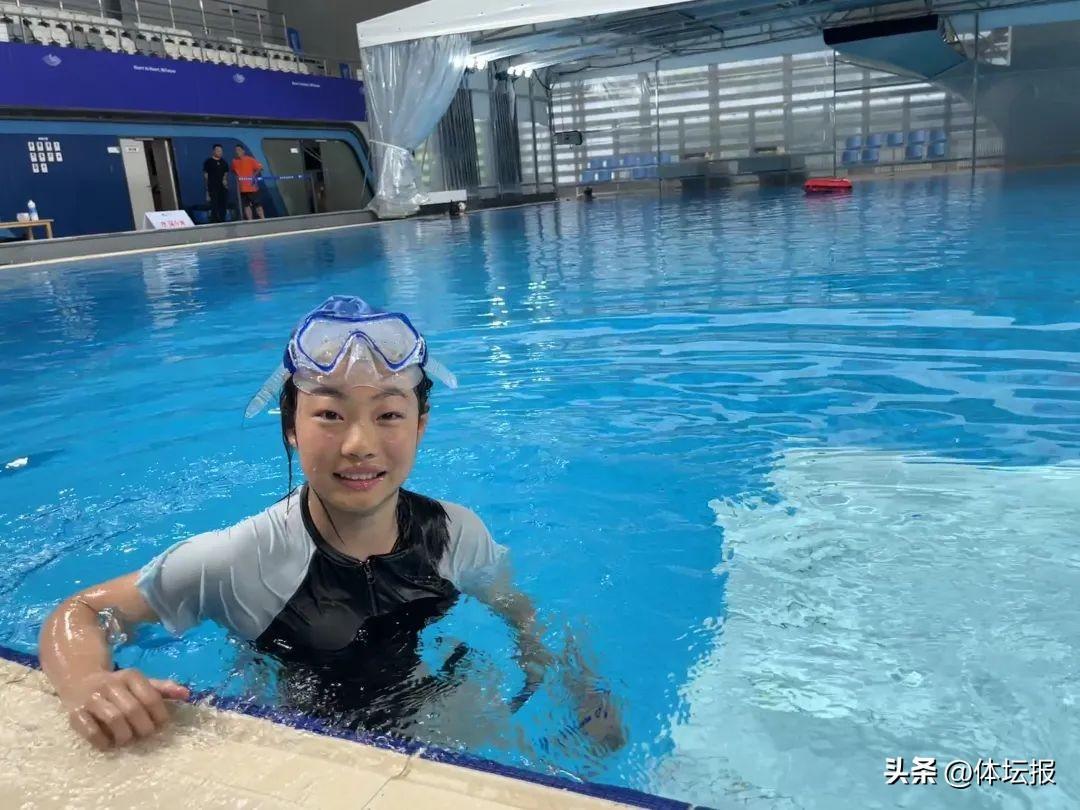 今年12歲的馬舒心小朋友正在池邊回憶如何下潛,她坦言,2年前她也是在黃龍體育中心學會美人魚潛水。但平時能玩潛水的機會並不多,好多技巧都忘了。今年趁着黃龍潛水館開放,再來熟悉一下潛水的感覺。