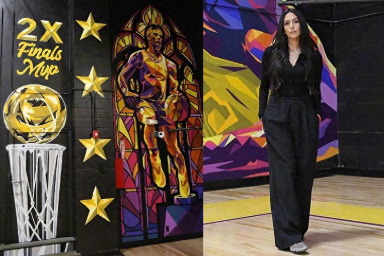 科比紀念館落成,瓦妮莎剪綵!一身黑衣顯瘦,凝視壁畫觸景生情
