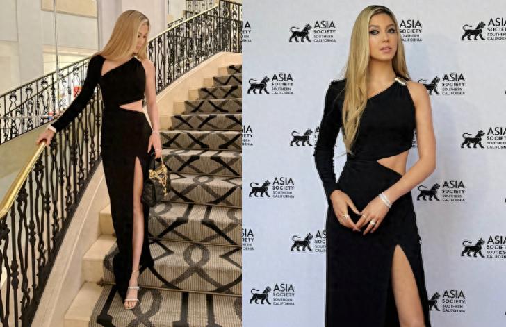 此番亮相,谷愛凌的造型選擇了煙燻妝,搭配一襲黑色長裙,非常漂亮,高叉裙襬凸顯其極致大長腿,斜肩設計透露嫵媚氛圍,一頭金髮垂腰的谷愛凌,在演講臺上自信大方,侃侃而談,而走上紅毯上的她,又處處美豔,秀色可餐。