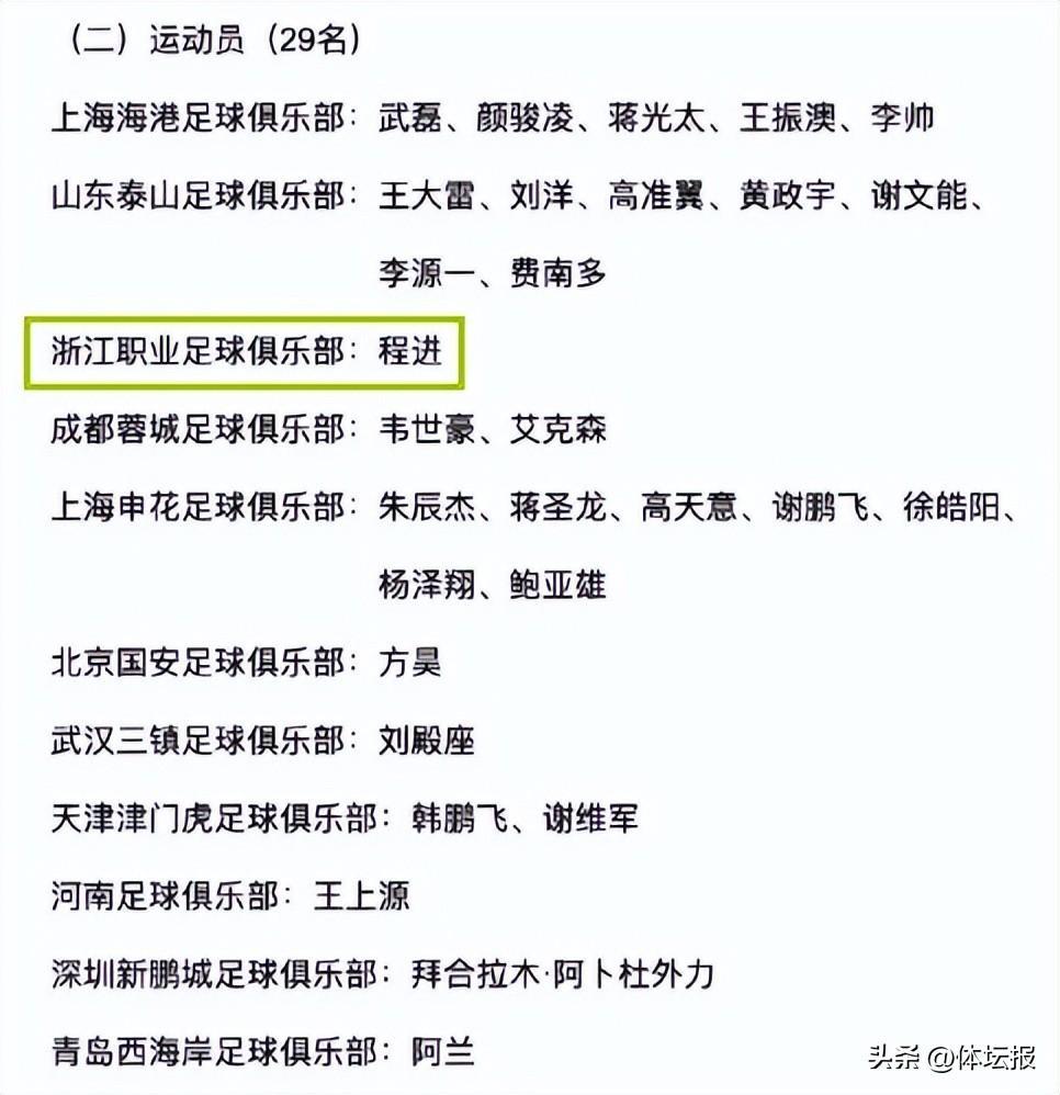 國足世預賽“生死戰”大名單:浙江隊球員程進再次入選