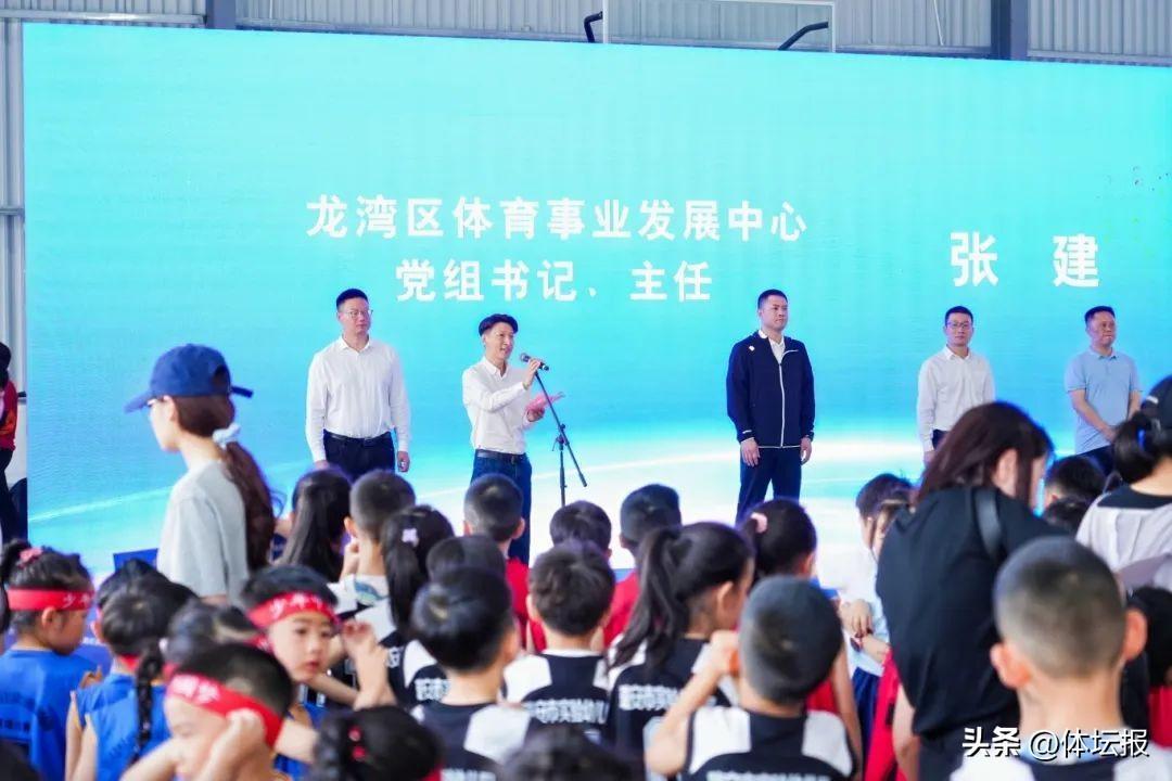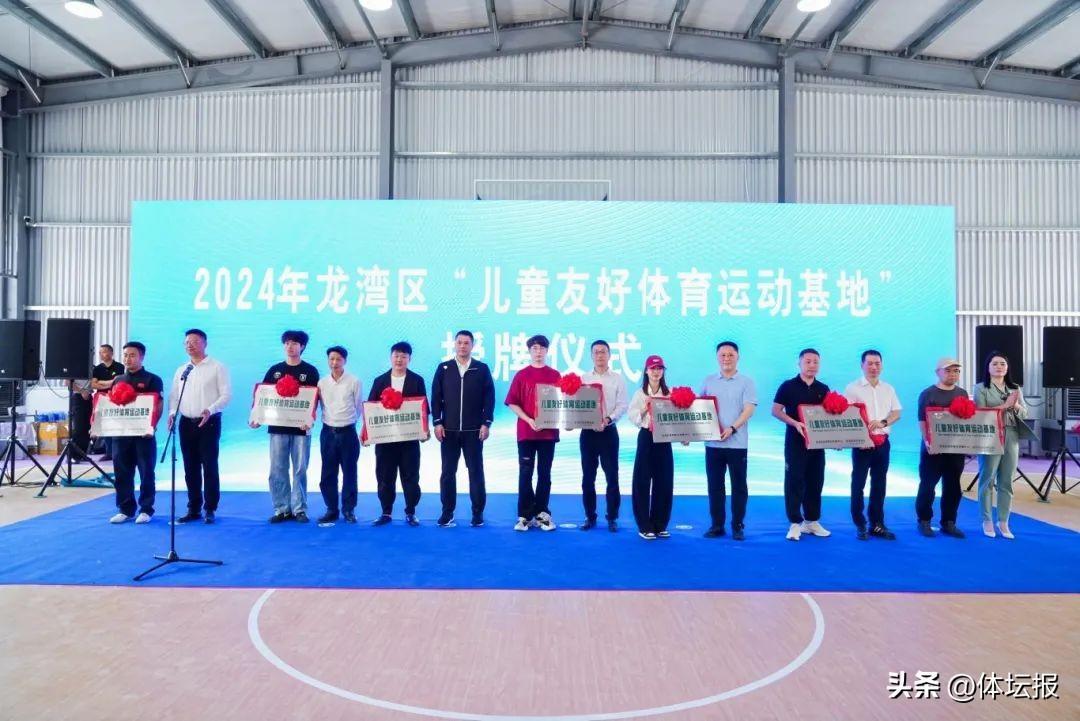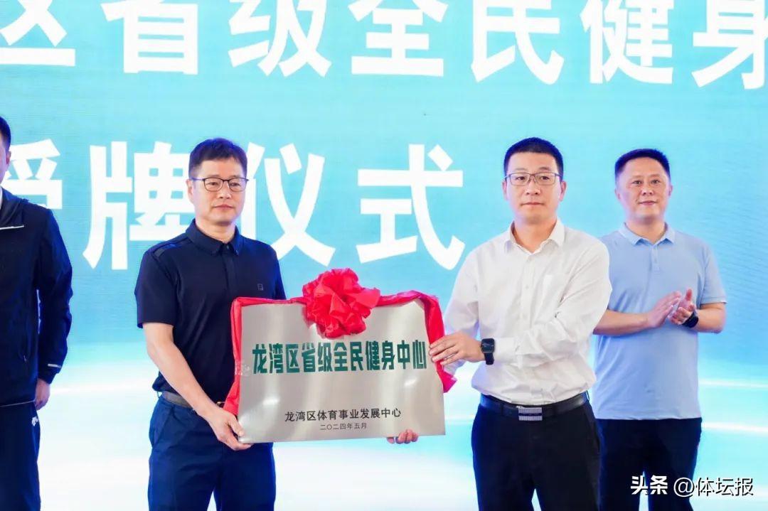 開幕式上,彭鋒爲“龍灣區省級全民健身中心”授牌,全體領導爲龍灣區“兒童友好體育運動基地”授牌。