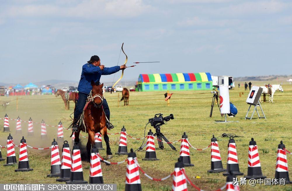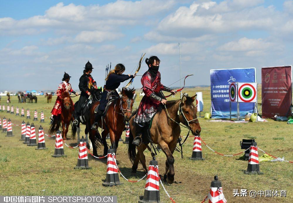 中國體育訊 中國旅遊日錫林郭勒主題活動暨2024年錫林郭勒蒙古馬超級聯賽系列賽事·中國騎射巡迴賽日前在黃金草原白音錫勒牧場舉行。賽事吸引了來自澳門、新疆、內蒙古、江蘇、湖北、四川、重慶、貴州、山東等地的選手共同競技。圖爲選手在騎射比賽中。(中國體育圖片 崇惠友 攝)