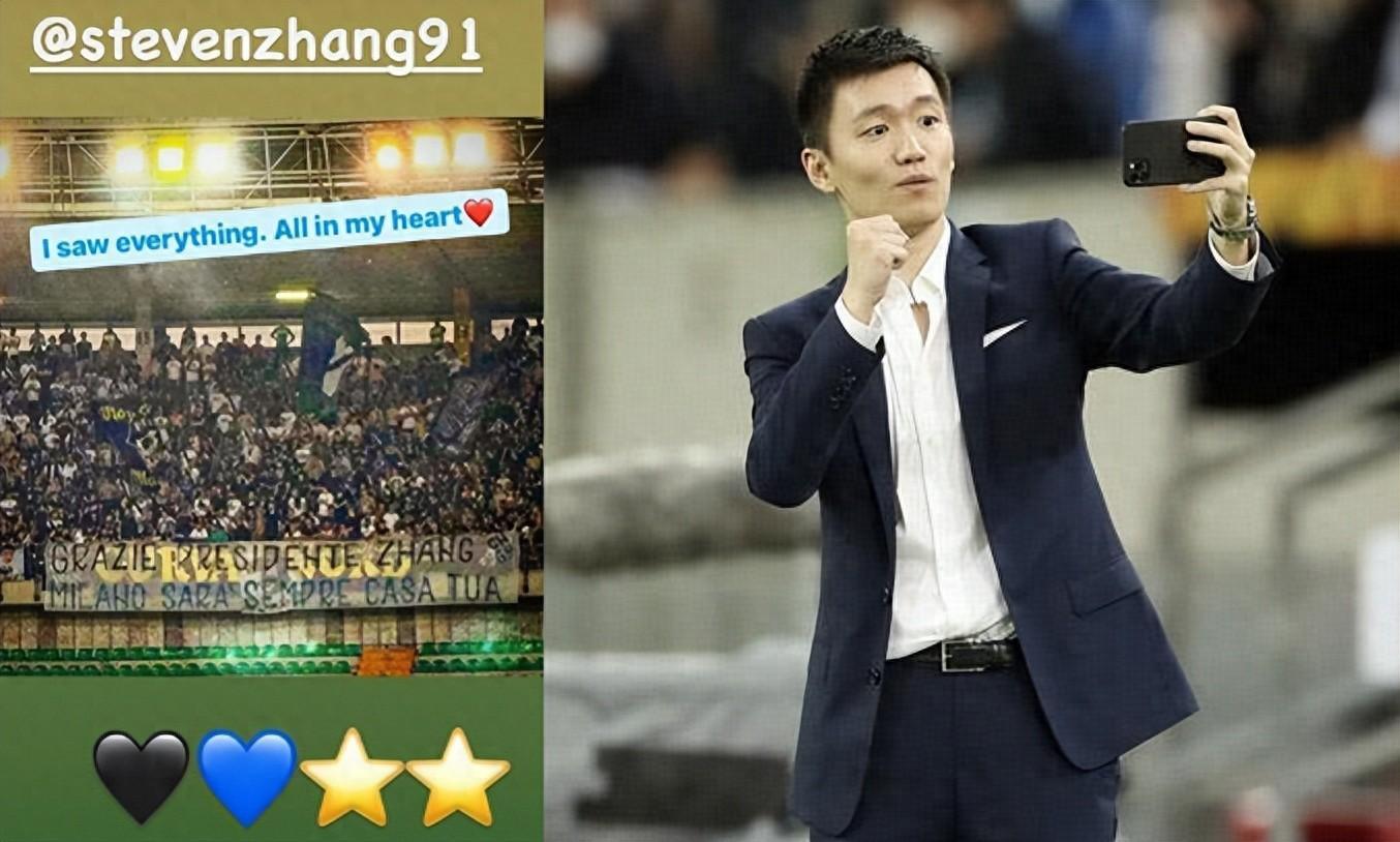 雖然張康陽的國米所有權被奪走了,但藍黑擁躉還是非常支持他的,投來滿滿的敬畏,北看臺球迷組織甚至在看臺上掛出了一條橫幅:“感謝張康陽,米蘭城永遠是你的家。”隨後,張康陽久違更新了個人社交平臺,曬出了一張球迷看臺的橫幅照片,配文:“我都看到了,這一切都在我心中!”