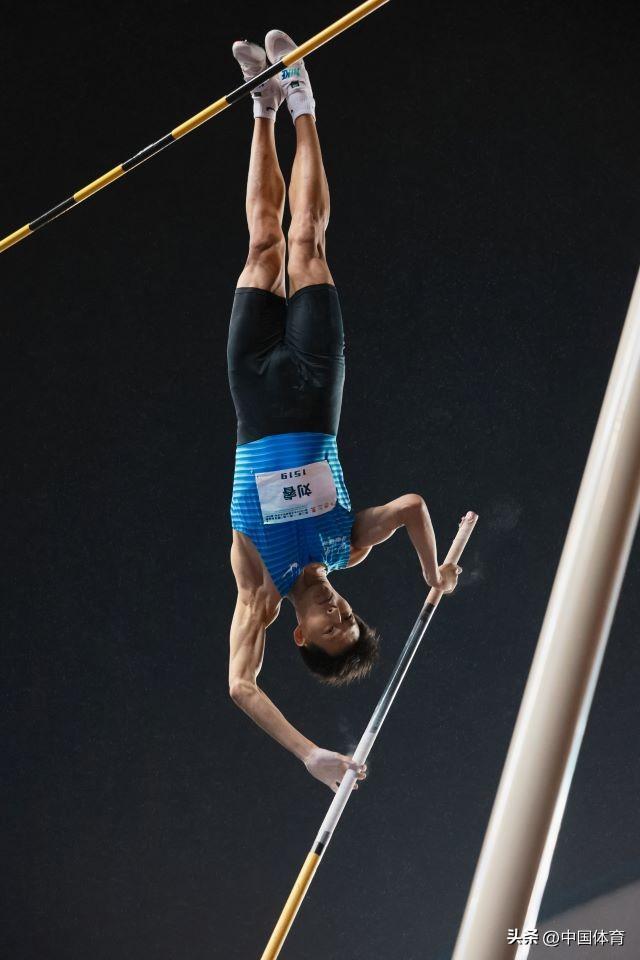 姚捷在男子撐竿跳高決賽中