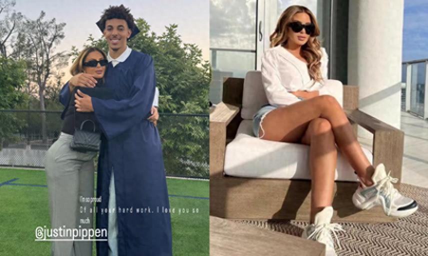 近日,拉爾薩參加兒子賈斯汀-皮蓬的畢業典禮,後者2007年7月份出生,剛剛結束了高中的學業,小夥子也繼承了老爹皮蓬的籃球天賦,運球技術嫺熟,突破犀利,能力不在哥哥斯科特之下,未來也是有機會闖蕩NBA的。
