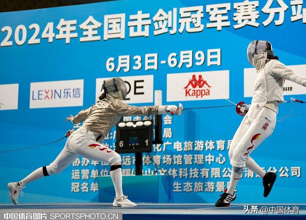 中國體育訊 6月3日,2024年全國擊劍冠軍賽分站賽(第二站)在廣東清遠開賽。在女子佩劍個人決賽中,江蘇隊楊恆鬱以15比5戰勝貴州隊賈曉曄獲得冠軍。(中國體育圖片 倪敏哲 攝)