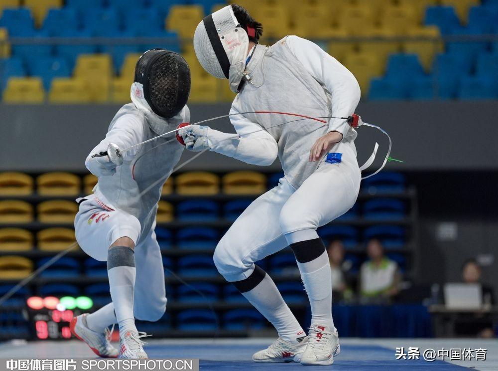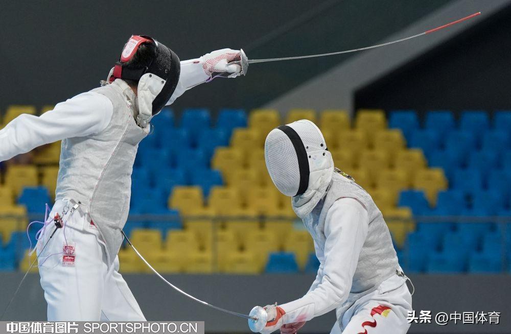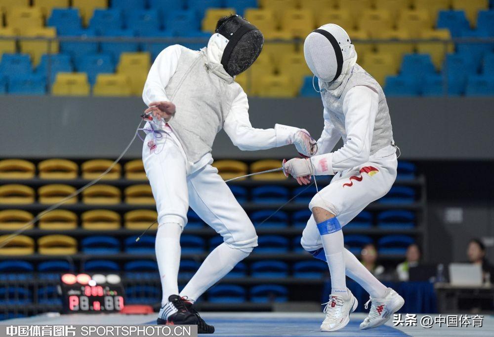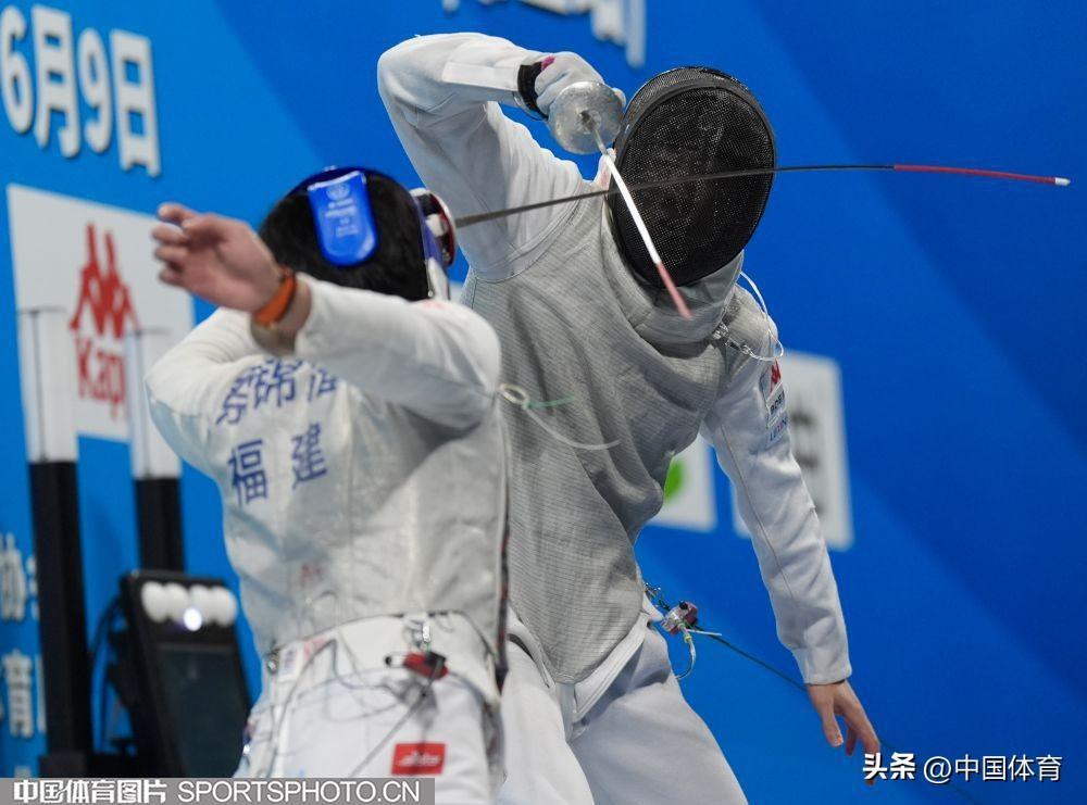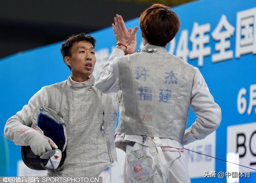 中國體育訊 6月6日,2024年全國擊劍冠軍賽分站賽(第二站)在廣東省清遠市體育館繼續進行。中國男子花劍國家隊以賽帶練組隊參加花劍團體比賽,雖然一路過關斬將並在決賽中戰勝對手福建二隊,但國家隊名次不計入此次比賽,最終福建二隊獲得本項目冠軍。(中國體育圖片 倪敏哲 攝)