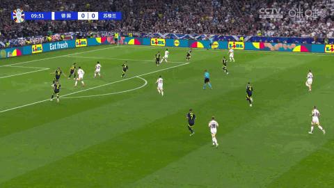 第42分鐘,穆西亞拉連續突破後分球右路,基米希傳中,禁區內一片混亂,波蒂厄斯飛鏟補射的京多安,主裁判觀看視頻回放,判罰紅點套餐。哈弗茨主罰命中,德國隊3-0蘇格蘭,同時蘇格蘭僅剩10人應戰。