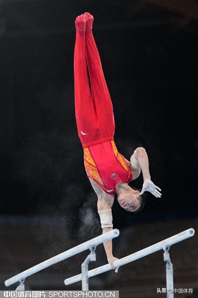 資料圖:鄒敬園在東京奧運會男子雙槓比賽中(中國體育圖片 魏徵 攝)