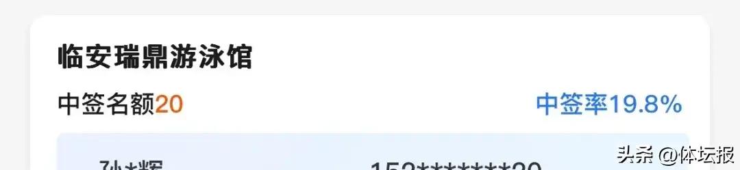 杭州市體育發展中心杭州游泳健身館是今年測試點之一,工作人員丁劍敏介紹,今年新增名額的中籤率爲15.96%,從目前的測試情況來看,基本上來測試的市民都能通過。