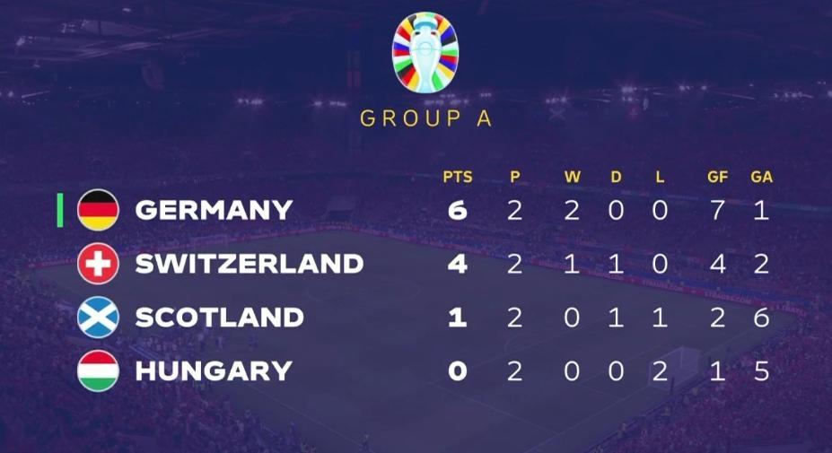 2-0!1-1!歐洲盃A組出線形勢:德國必爭頭名,淘汰賽避開西意