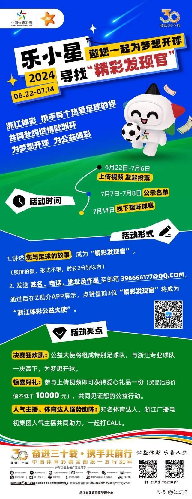 在這個承載着特殊意義的2024年歐洲盃年份,浙江體彩緊握時代脈搏,推出“樂小星邀您一起爲夢想開球”系列主題活動,巧妙結合本屆賽事的非凡背景,不僅聚焦賽場上的激烈對抗,更深層次地挖掘足球運動背後的時代精神、全民熱情與共同夢想,引領社會各界共赴一場超越比賽本身的公益之旅。