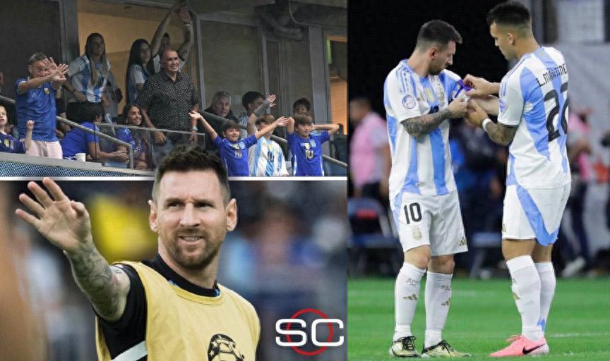 值得一提的是,這屆美洲盃由於是在美國舉行的,安東內拉幾乎上每一場都來現場觀戰,如同普通球迷一般,孩子們也一樣,全都披掛父親的戰袍,一家子整整齊齊的,難怪賽場內的梅西看到這溫暖一幕,會忍不住嘴角上揚,揮手與家人打招呼。
