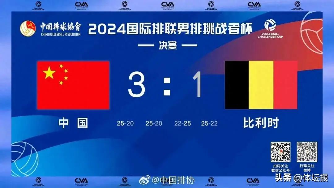 比賽中,中國男排延續前一場的火熱手感,在攔網和接發球方面表現強勢,造成比利時男排接連失誤。進攻方面,主攻張景胤、俞元泰和接應王徑一發揮穩定,幫助中國男排牢牢控制着場上局面,最終中國男排戰勝對手,拿下冠軍。雙方四局比分爲25:20、25:20、22:25、25:22。