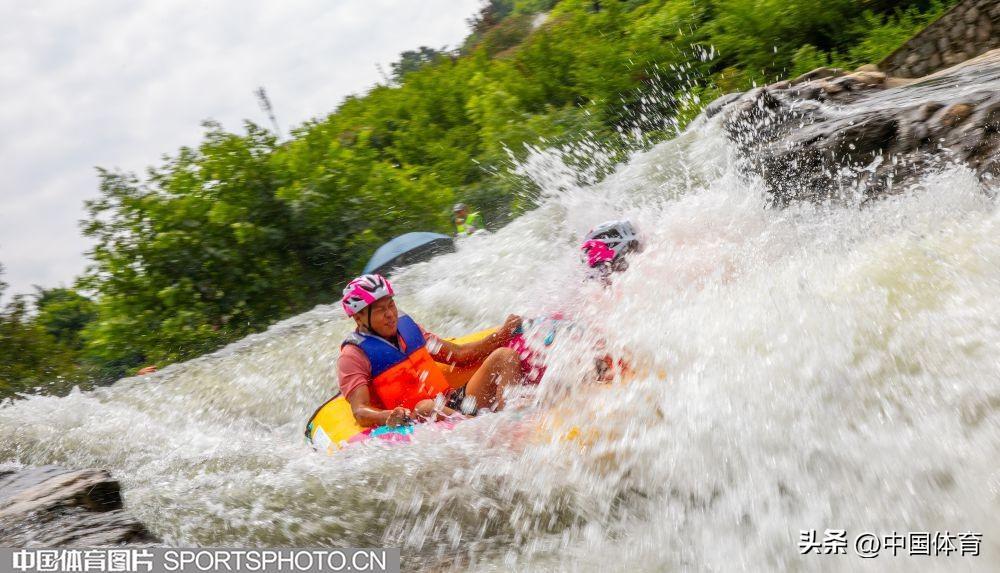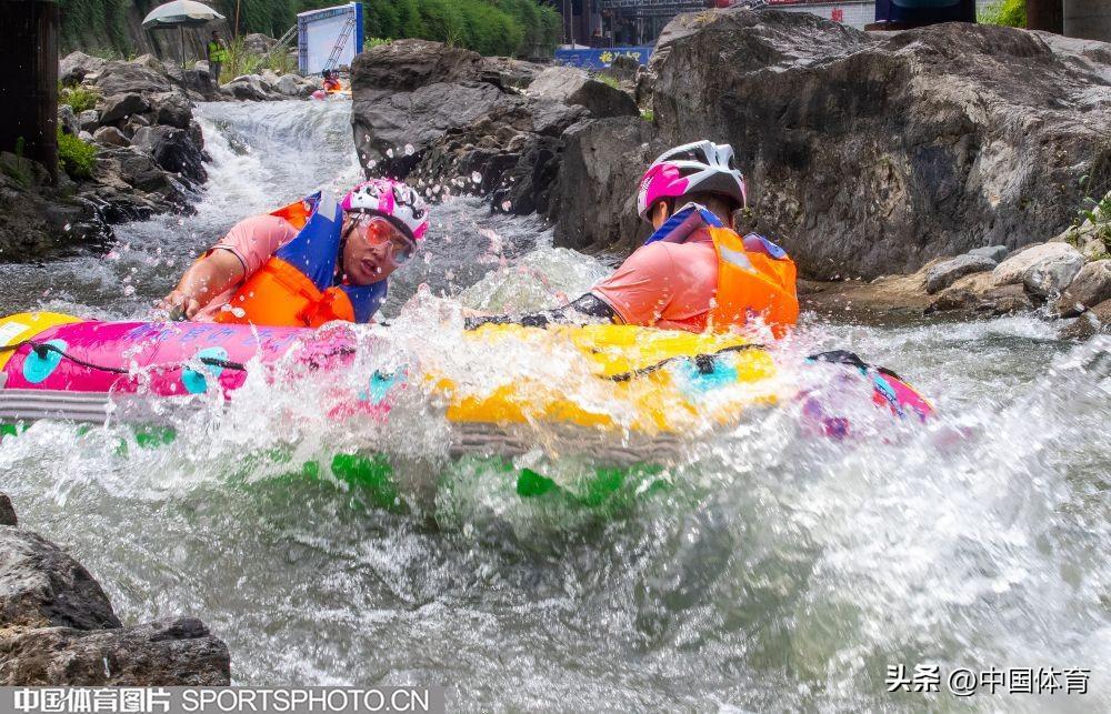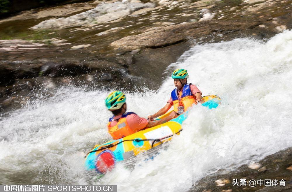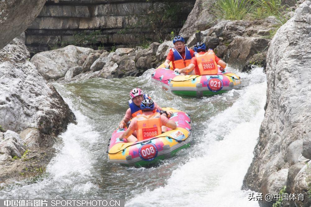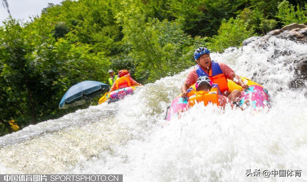 中國體育訊 日前,“稻花香”杯2024中國宜昌朝天吼自然水域漂流大賽在湖北省宜昌市朝天吼漂流景區火熱開賽,6名體育冠軍領航起漂,來自全國1100餘支參賽隊伍的3000多名選手巔峯競速。圖爲比賽場面。(中國體育圖片 崇惠友 攝)