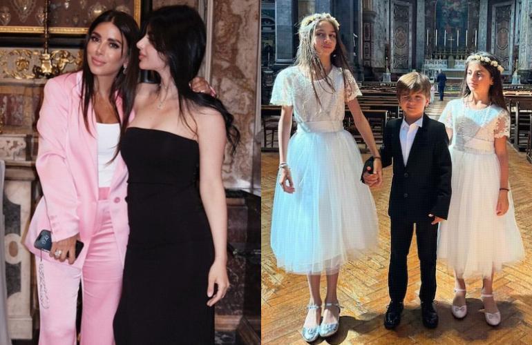 日前,西班牙球星法佈雷加斯帶着老婆丹妮埃拉,還有四個孩子,前往當地教堂進行禮拜儀式,25歲的繼女瑪利亞黑色抹胸長裙優雅亮相,媽媽丹妮埃拉同樣迷人,大秀傲人身材,兩個小女兒身着純白色長裙,如同天使一般可愛,而小法的兒子也很帥氣,小小年紀就繼承了老爹的顏值氣質,一家六口與教父同框合影,畫面溫馨。