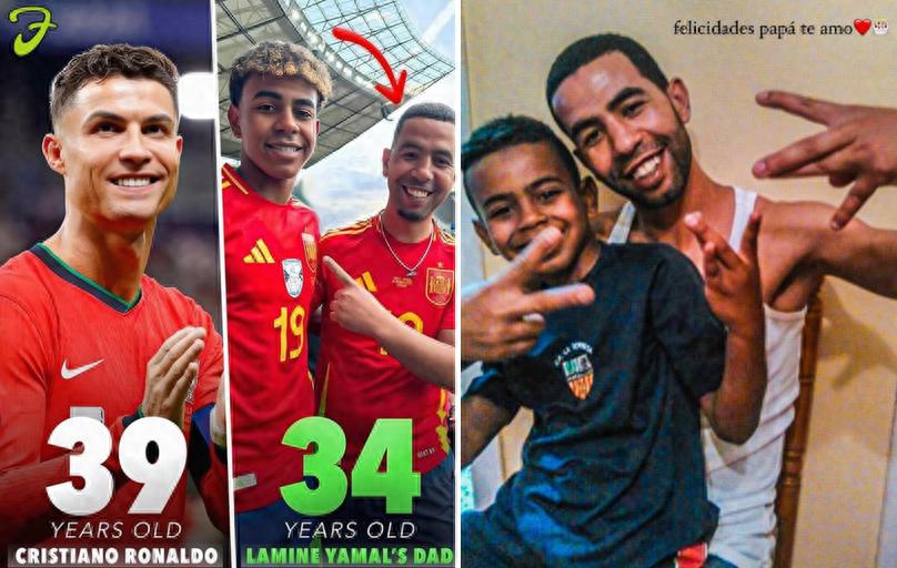 要知道,以往足壇轉播畫面中,如果出現球員父親的角色,一般都是雙鬢斑白,被歲月侵蝕過的形象,而亞馬爾的父親也不一樣,他活蹦亂跳,年輕氣盛,頗爲稚嫩的面龐,畢竟兒子也才16歲,他年紀也不大,今年不過34歲。