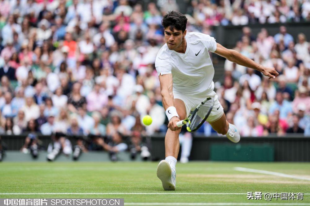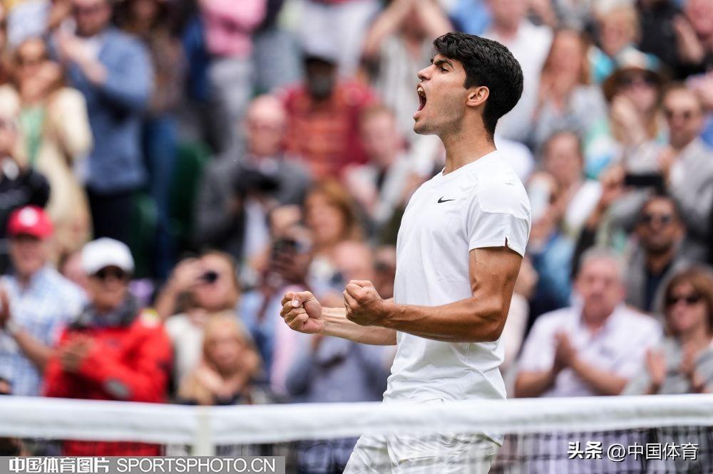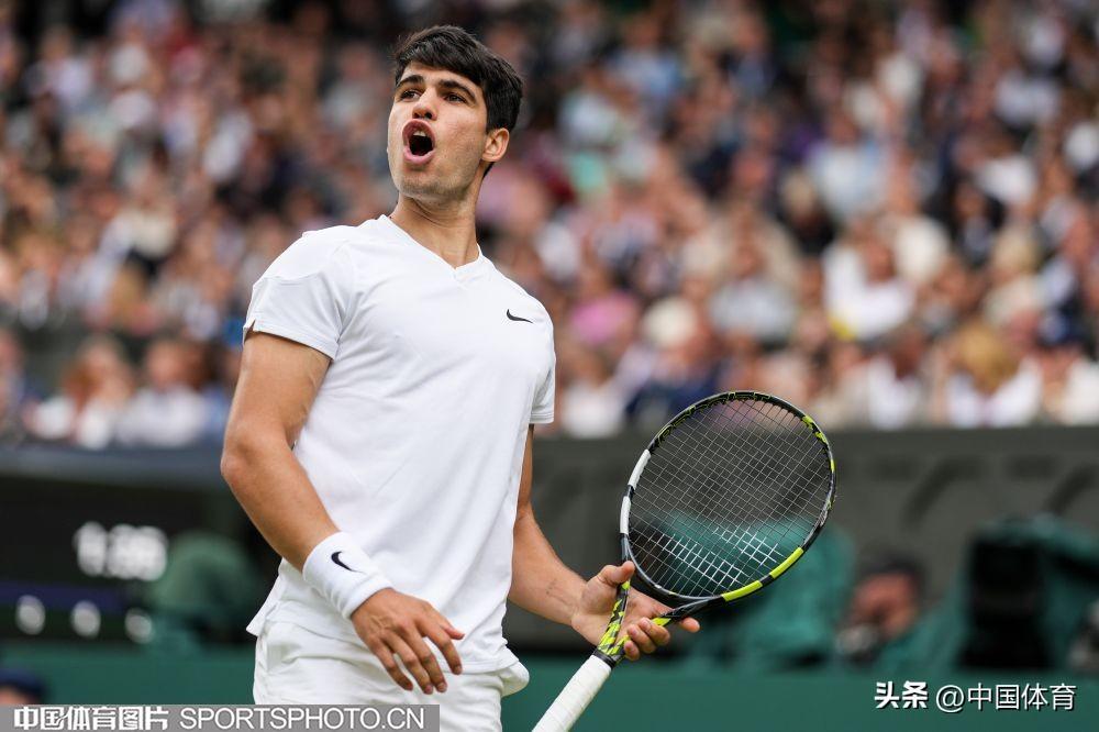 中國體育訊 北京時間7月13日,在2024溫布爾登網球錦標賽男子單打半決賽中,西班牙選手阿爾卡拉斯3比1戰勝俄羅斯選手梅德韋傑夫,晉級決賽。(中國體育圖片 唐詩 攝)