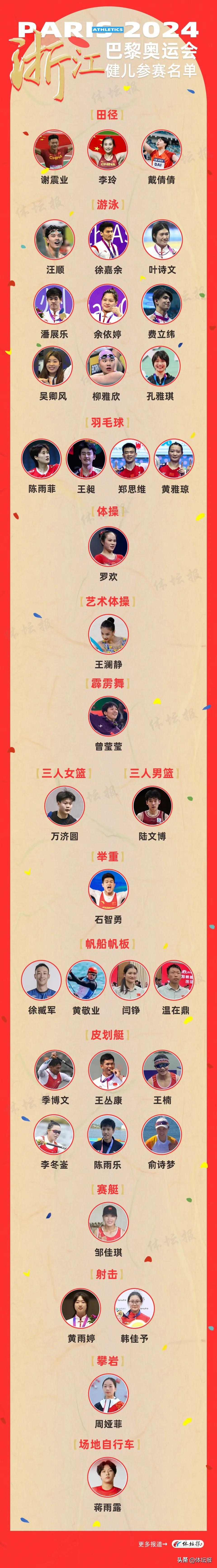 在這份代表團大名單中,浙江運動員上榜游泳9人、皮划艇6人、帆船4人、羽毛球4人,這4個項目入選人數均居各省(市、自治區)第一位。