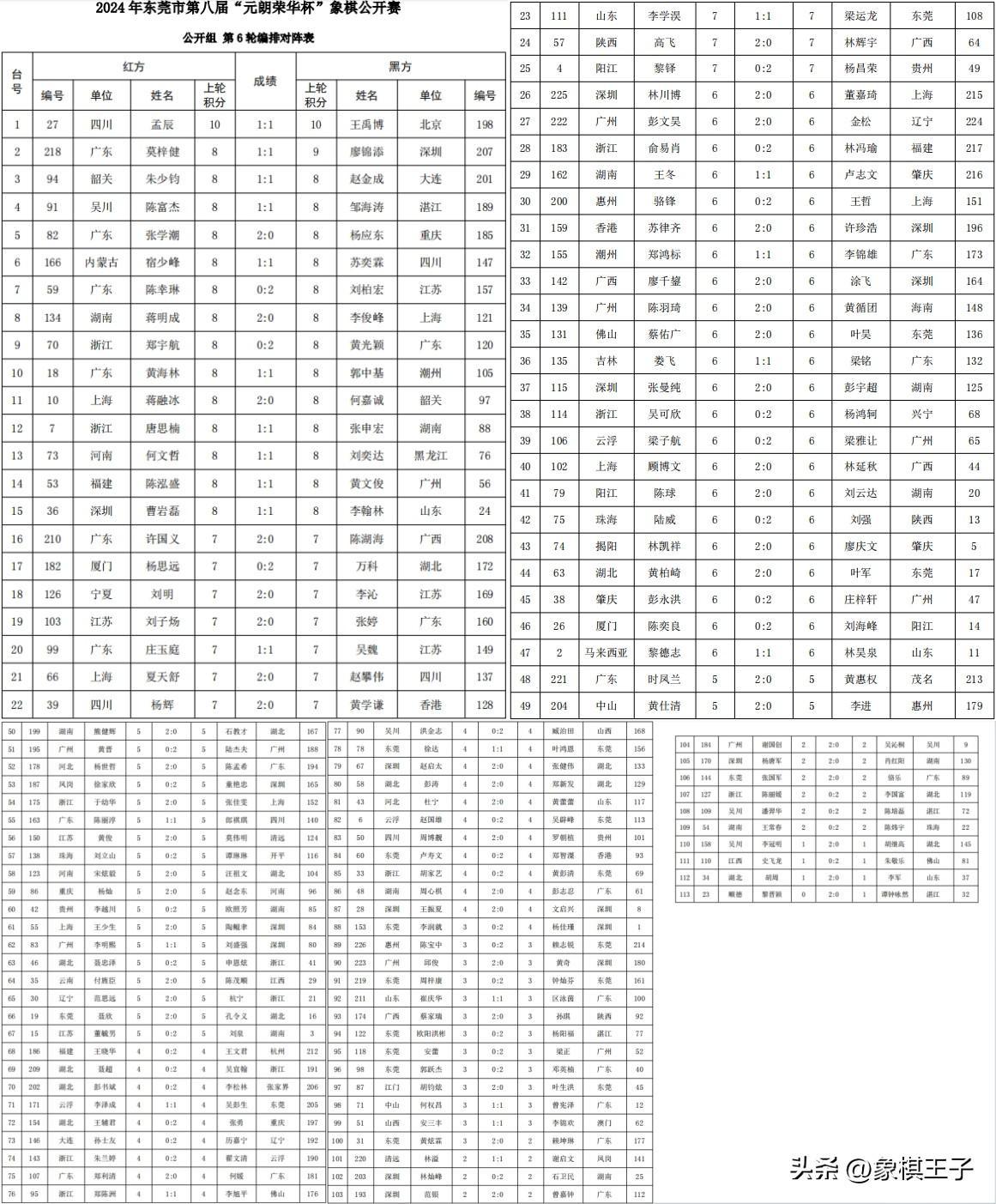 大賽14日上午八點半、下午兩點,進行最後五輪的衝冠大決鬥,誰能登頂羣雄,笑傲賽場,昨夜返長,今日直播了八個多小時,寫稿數千字,稍作休整,象棋王子也將繼續展開全程的直播和報道,與棋友一起共見冠軍榮耀,敬請關注、支持、守護,謝謝!