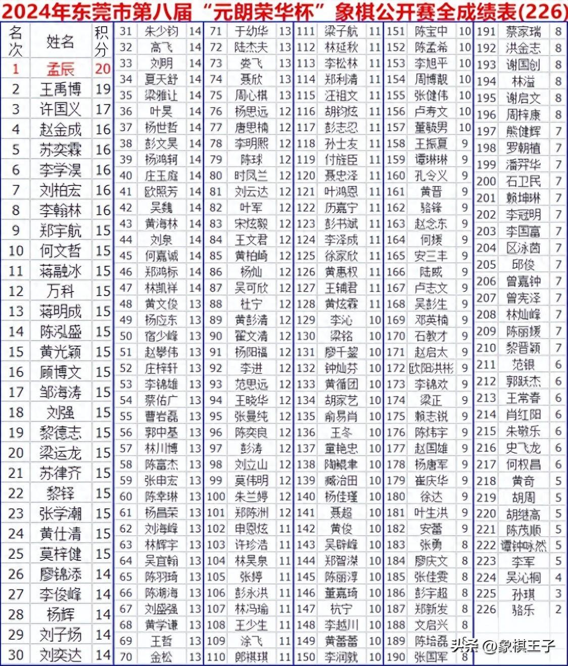 這次2024年東莞市第八屆“元朗榮華杯”象棋公開賽,陣容鼎盛,來自全國各地的226位棋界好手匯聚一堂,六十多位特大、大師,十虎全員,省冠、少星無數,共決棋戰,迎接年度超級之戰。