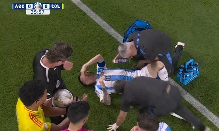 梅西躺在草坪上,阿根廷隊醫迅速進場給他進行治療,梅西雙手掩面,隔着屏幕都能鑽心的痛,這種鞋釘撞腳踝的硬傷,確實非常難受,如果只是皮肉之痛還好,如果傷到骨頭,梅西恐怕都無法再堅持了。彼時鏡頭還對準了替補席上的勞塔羅,他已經開始熱身,從這個細節也不難看出,阿根廷教練組也很擔心梅西的傷勢狀況。