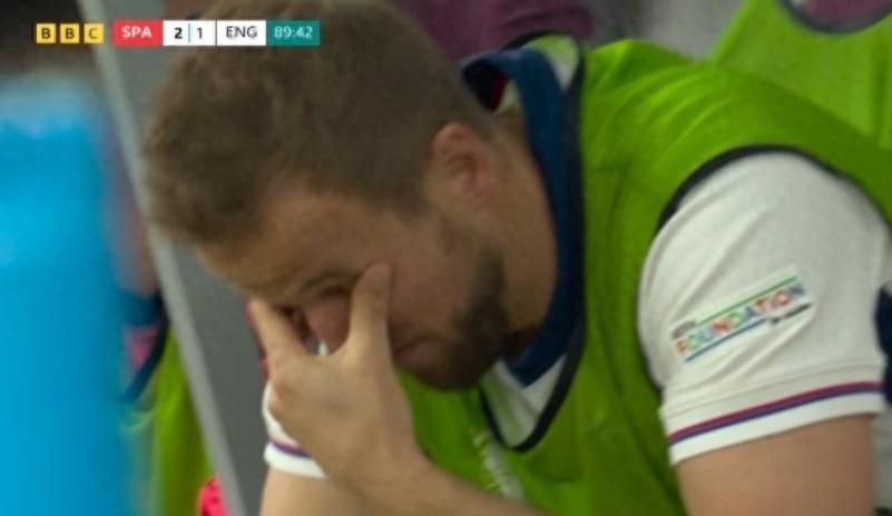 而在丟球之後,英格蘭本還有機會在第90分鐘完成壓哨絕平,可惜賴斯的頭球被西班牙門將西蒙撲出,隨後格伊的補射又被奧爾莫門線解圍,可以說,“鬥牛士軍團”極限救險,簡直是天要亡英格蘭,這也讓替補席的凱恩揉眼無奈,不敢相信。