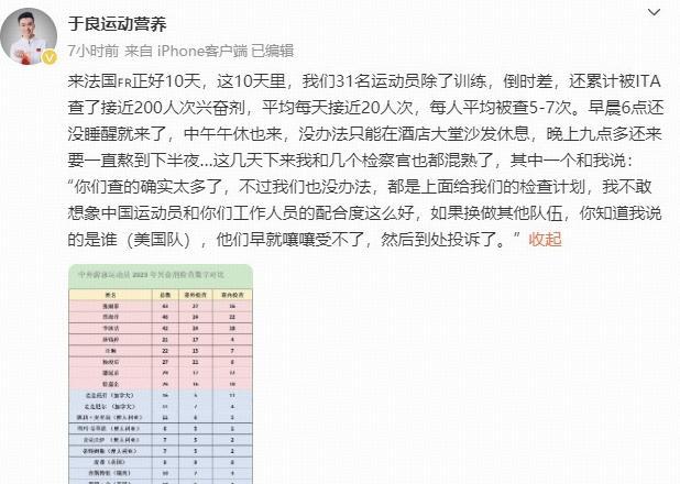 巴黎奧運會在即,可是中國游泳隊卻在近期遭遇了頗爲不公平的對待,根據前方人士的消息,短短10天時間內,中國游泳隊接受近200次興奮劑檢測,曝光該細節的是中國游泳國家隊營養師於良,他直言全隊31名運動員被國際興奮劑檢測組織(ITA)查了近200次!