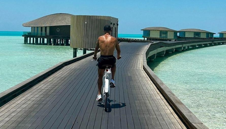 除了分享在海邊緊摟喬治娜的甜蜜瞬間,C羅還曬出了自己騎自行車的照片,從背影遠遠看去,C羅的肌肉線條依然清晰,這年頭葡萄牙巨星嚴格律己,從不放棄任何一刻健身的機會,來到紅海度假,C羅也要騎車、練瑜伽、游泳和擼鐵,不少網友感嘆道:“活該他能常青到現在!”