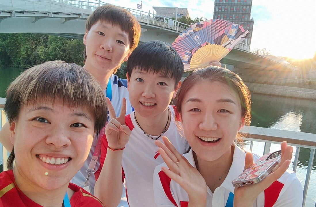 太可愛!女乒4人塞納河畔合體,孫穎莎比耶,陳夢曬奧運村牀位