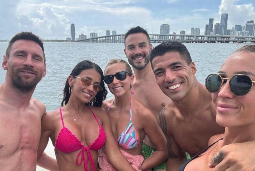梅西攜妻子度假,邀蘇牙夫婦出海!安東內拉秀身材,不輸卡戴珊