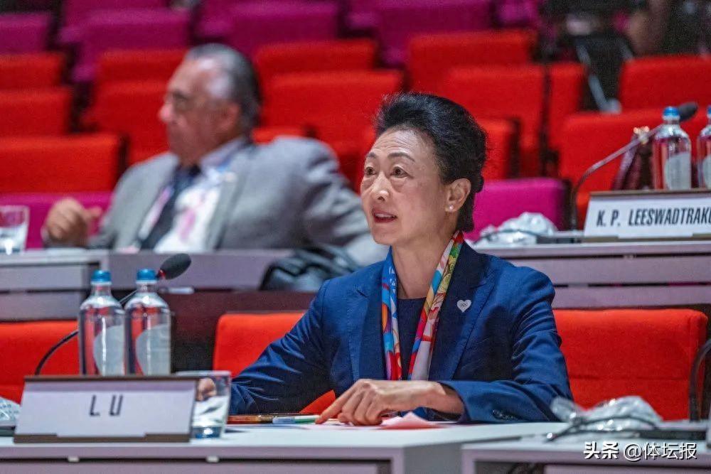 中國奧委會副主席李玲蔚在法國巴黎舉行的第142屆國際奧林匹克委員會全會上。圖自新華社