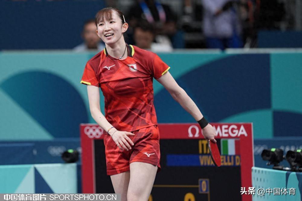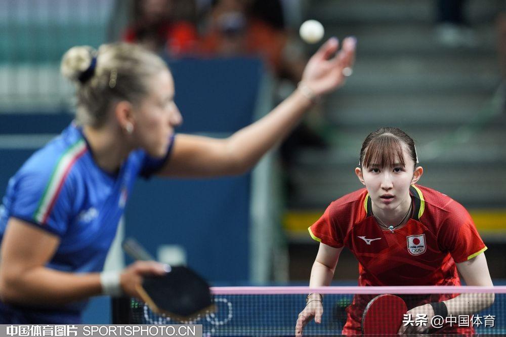 中國體育訊 當地時間7月28日,巴黎奧運會乒乓球女子單打64強賽在南巴黎競技場舉行。日本選手早田希娜4比0擊敗意大利選手狄波拉·維瓦雷利,成功晉級32強。圖爲早田希娜在比賽中。(中國體育圖片 倪敏哲 攝)