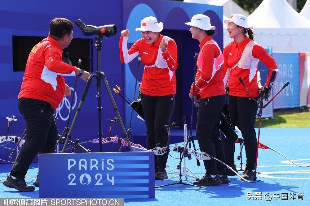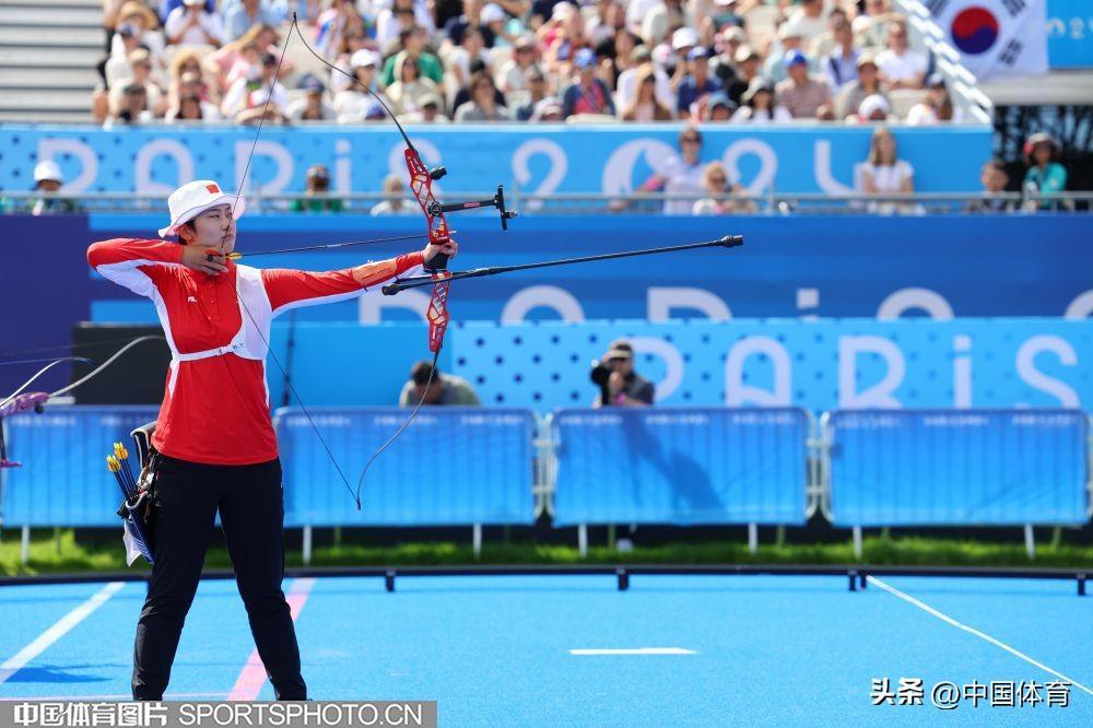 中國體育訊 當地時間7月28日,巴黎奧運會射箭女子團體半決賽在榮軍院舉行。中國隊5比3擊敗墨西哥隊,晉級決賽。(中國體育圖片 安靈均 攝)