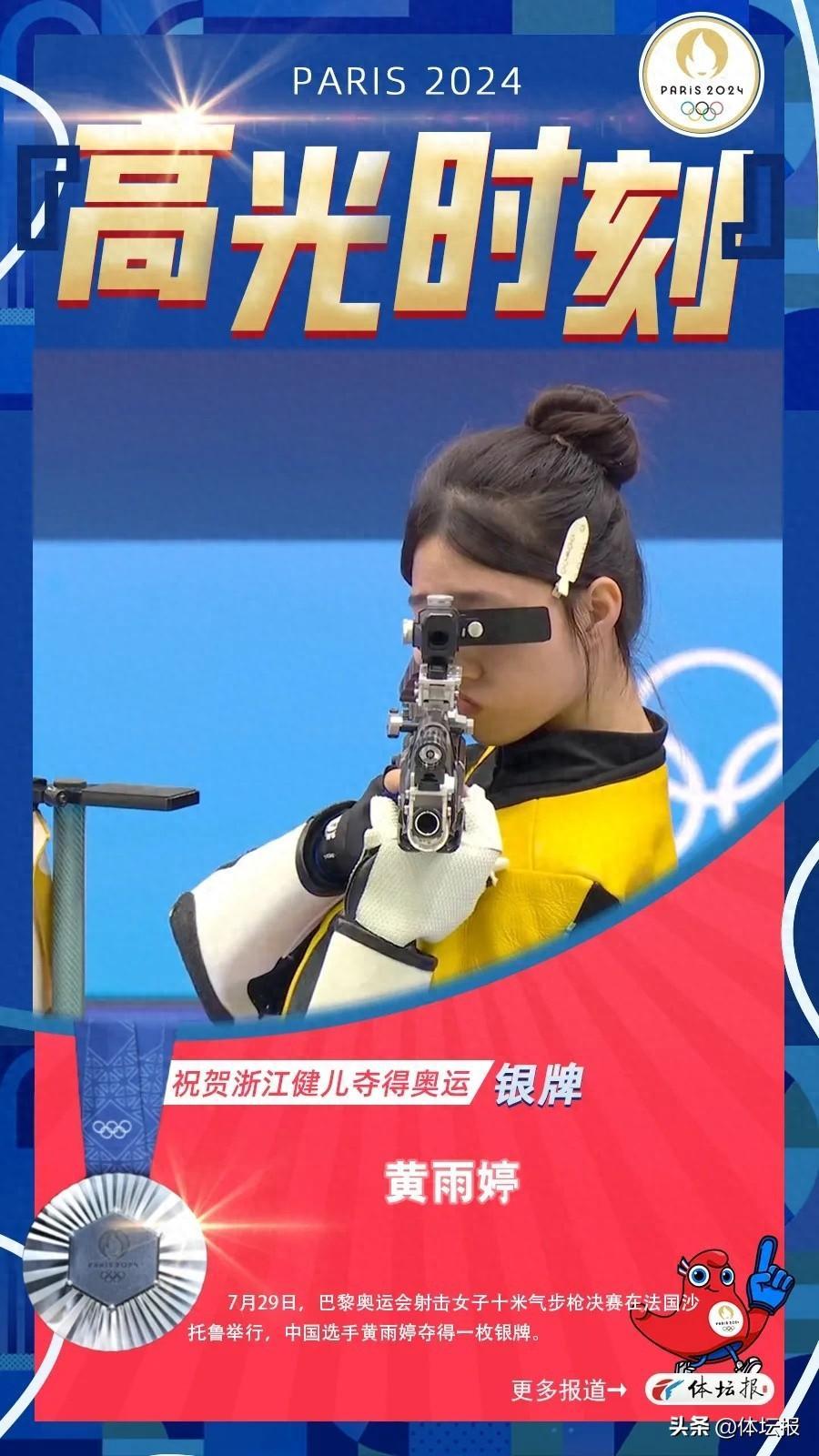 北京時間7月29日,巴黎奧運會女子10米氣步槍決賽,此前在混合團體中奪冠的浙江小將黃雨婷,打出了251.8環追平了奧運會紀錄,在加賽中以0.1環之差輸給對手,最終拿下銀牌。