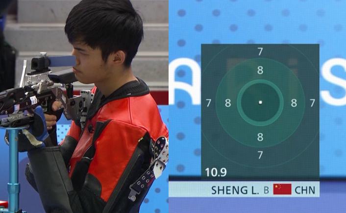 值得一提的是,在決賽中,盛李豪完成了兩次滿環射擊,也就是10.9環,這兩環射擊非常精彩,一下子拉開與對手的差距,電視轉播鏡頭也對準了盛李豪的這次射擊,從右下角的靶位小窗口可以看到,勝利好的這一槍,直擊靶心,完美重合,簡直是“強迫症福音”!