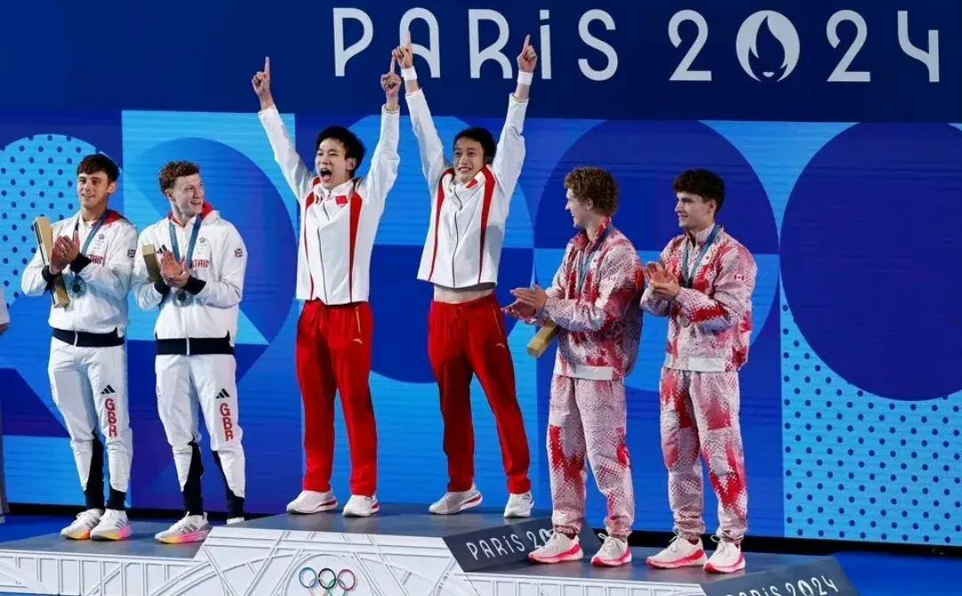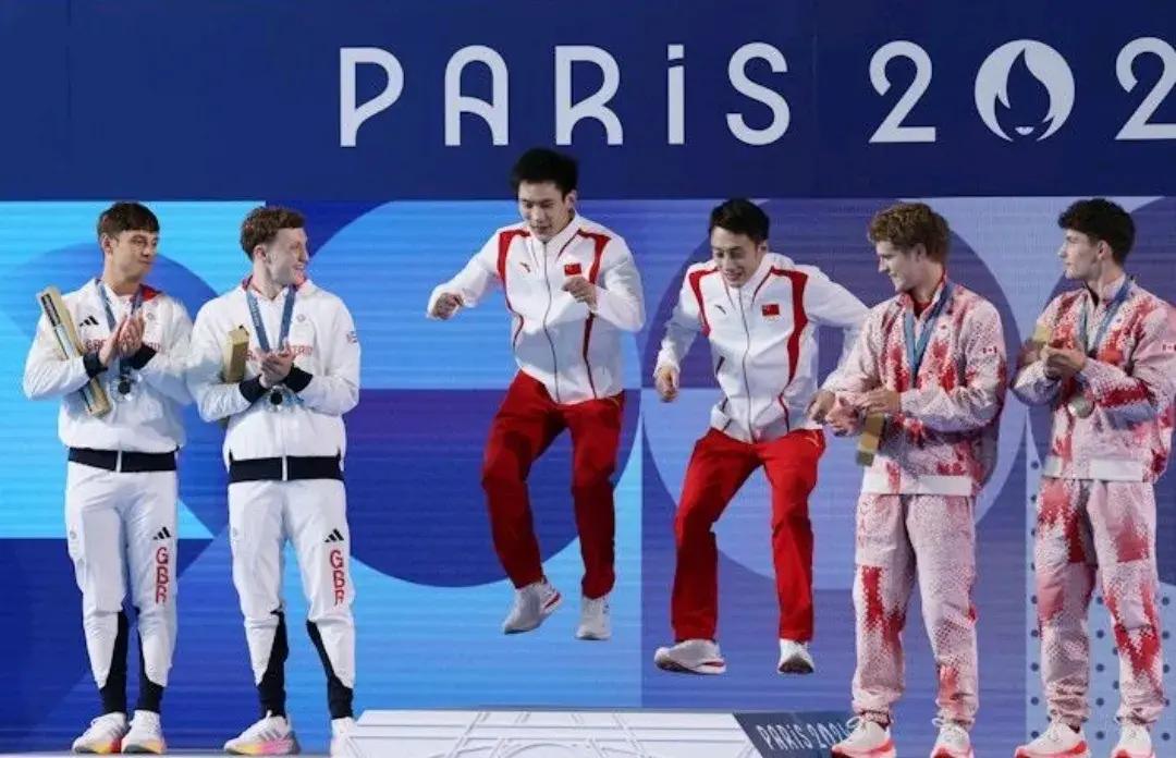 第五輪,我們拉開差距,領先了17分,這樣一來,隨着最後一輪繼續高水平動作,楊昊和練俊傑拿到冠軍,爲中國體育代表團斬獲巴黎第四金,頒獎環節,中國組合興奮地跳上最好領獎臺,非常激動,振奮人心!