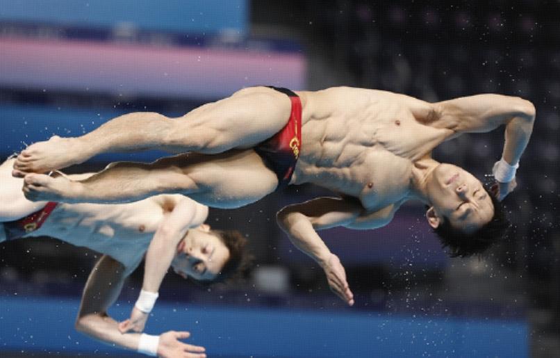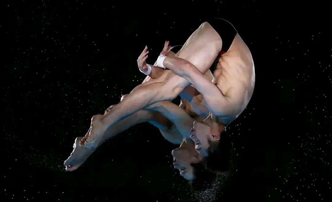 第三輪,英國組合戴利與威廉姆斯出場,反身的向內翻騰三週半抱膝,目前總得分188.52分,超越了加拿大組合,隨後楊昊和練俊傑出場,他們頂住壓力,平穩發揮,向後翻騰兩週半轉體一週,水花控制得還不錯,拿到拿到了85.44分,目前總得分199.44,領先第二名的戴利組合超過11分了。